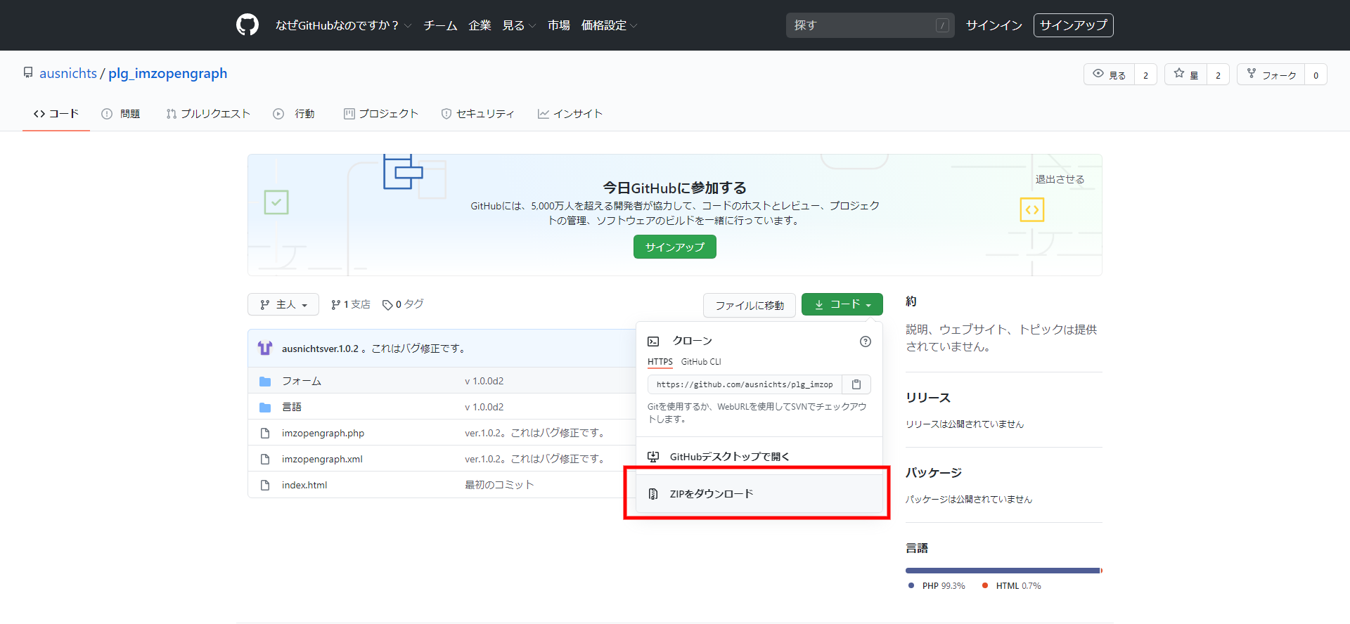 ダウンロード先からZIPファイルをダウンロードしてください。