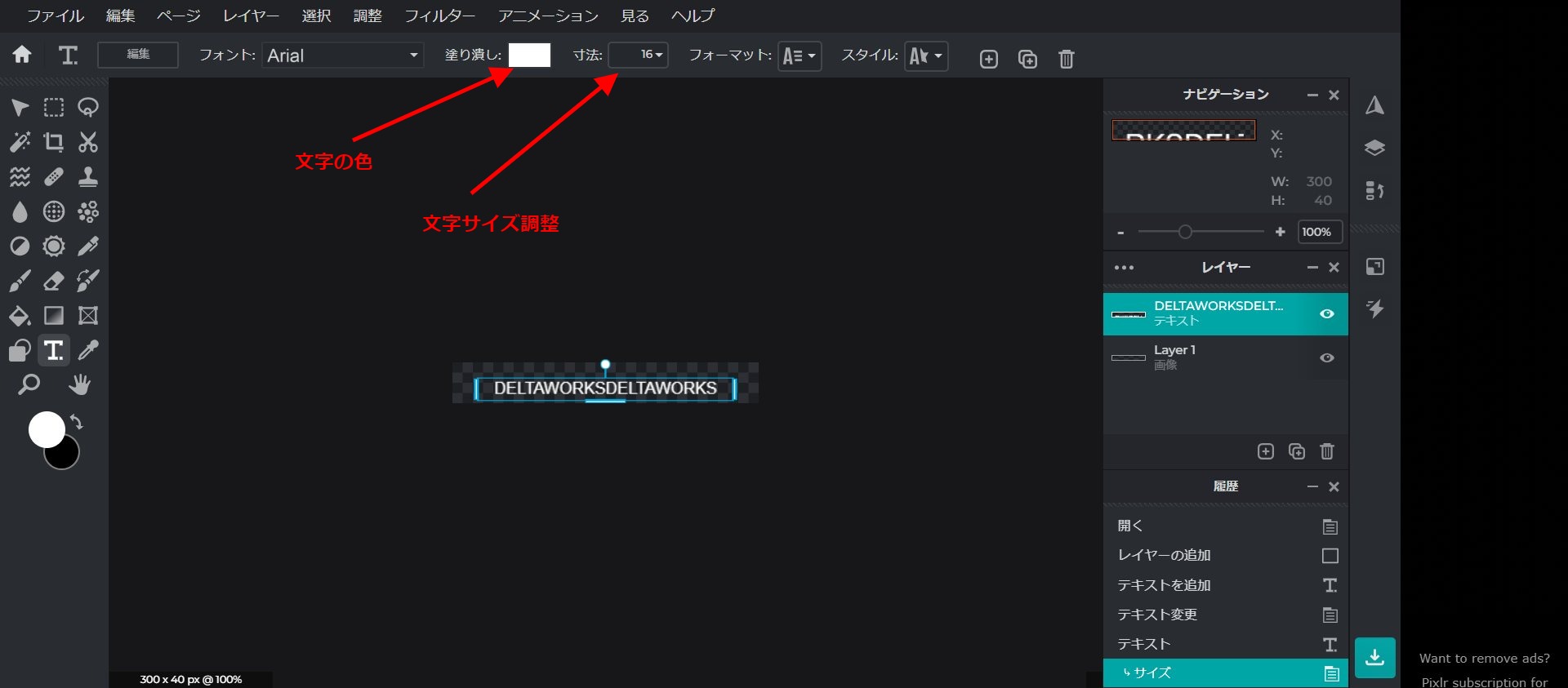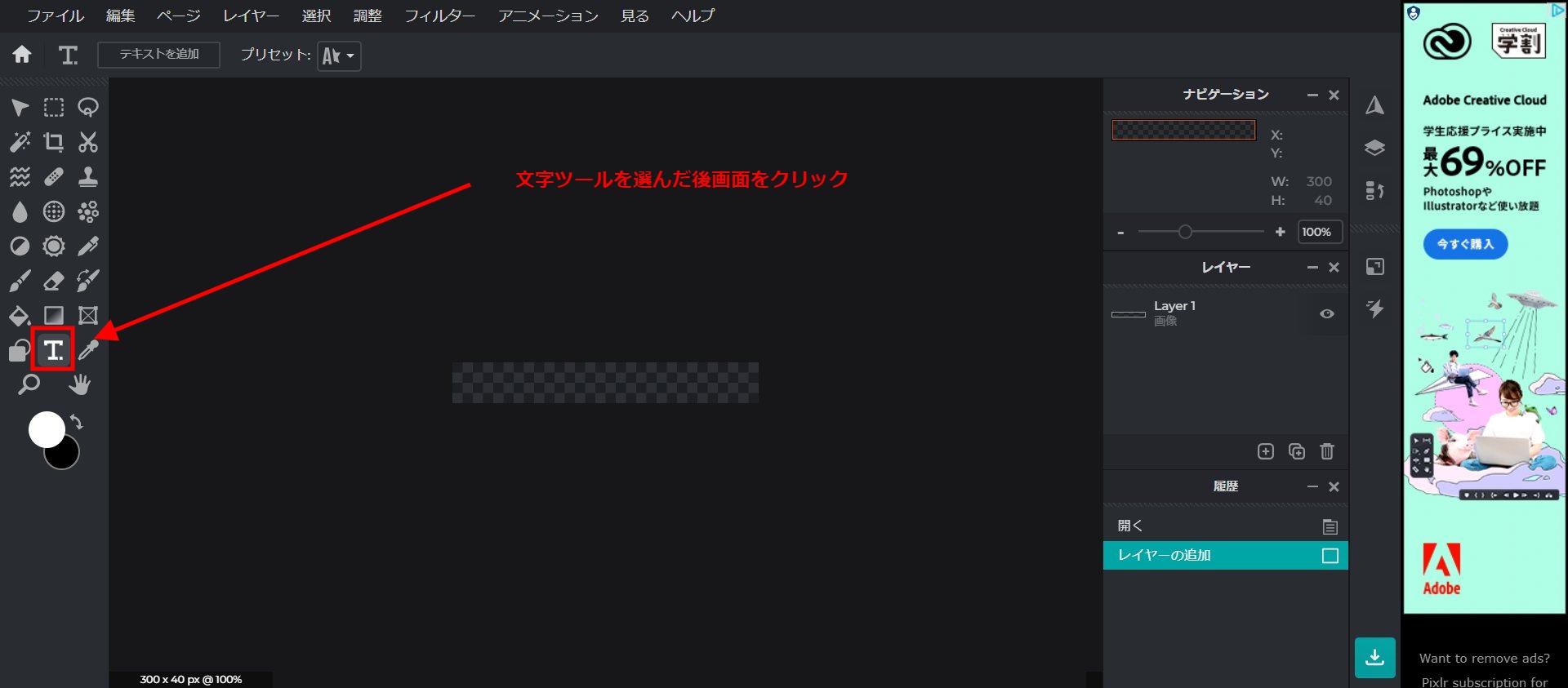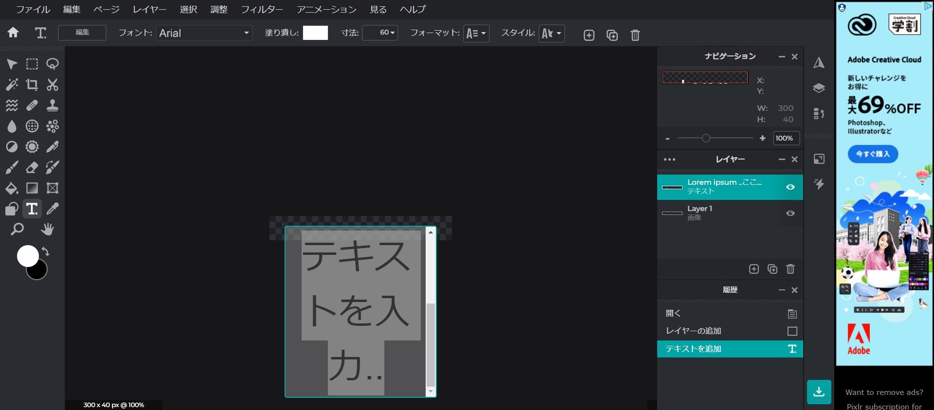 上記のサイトの Pixlr E というエディタを使います。