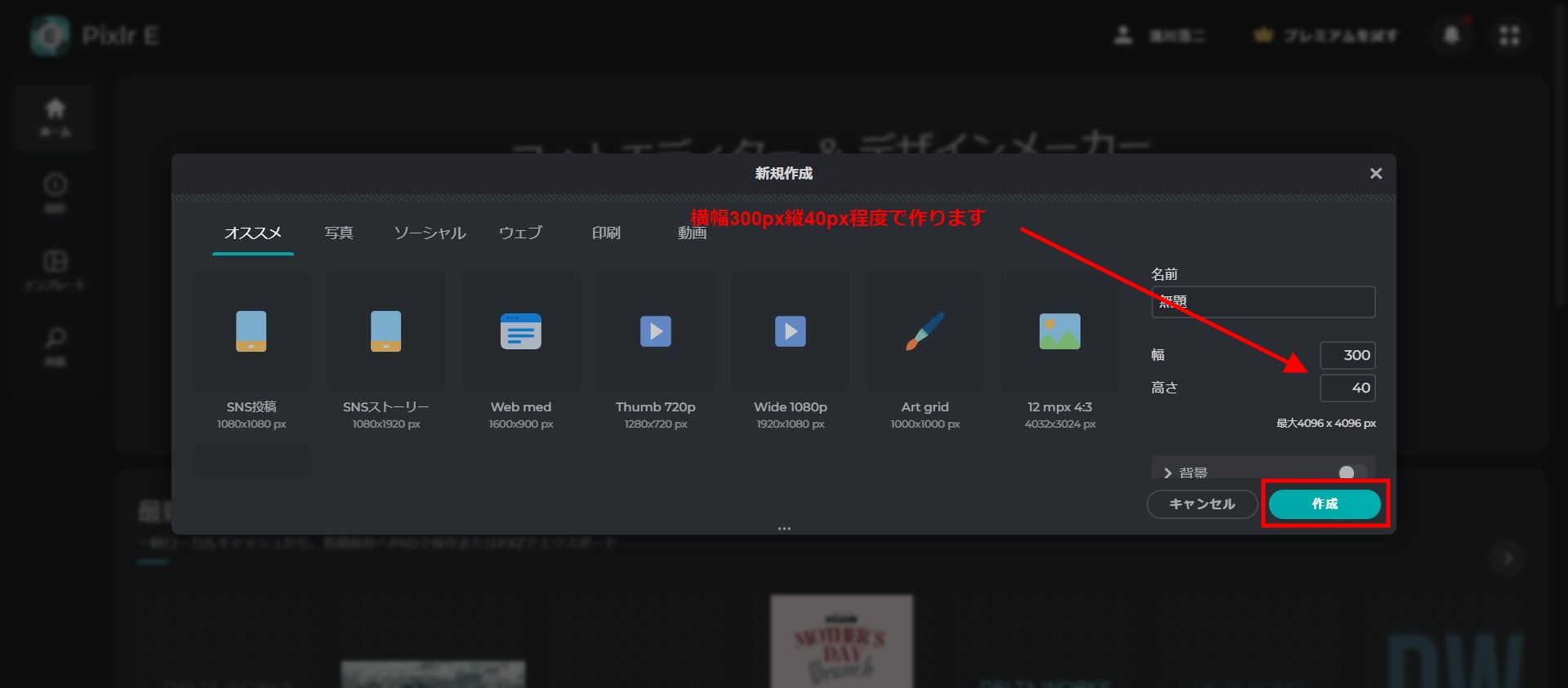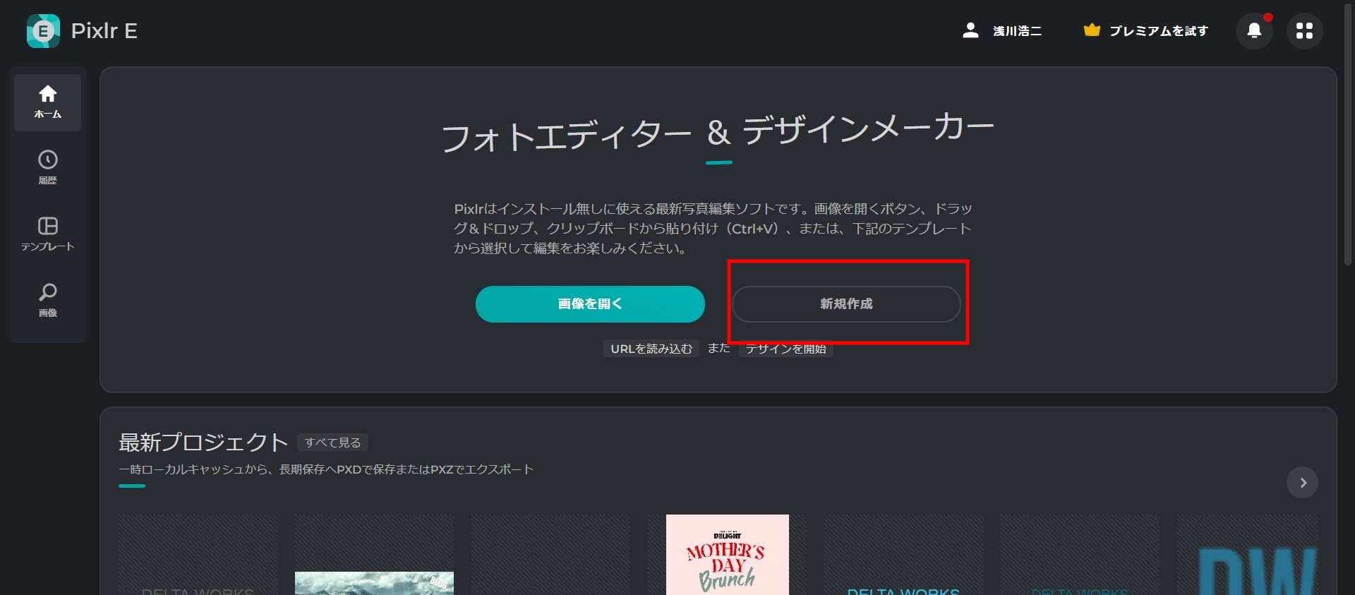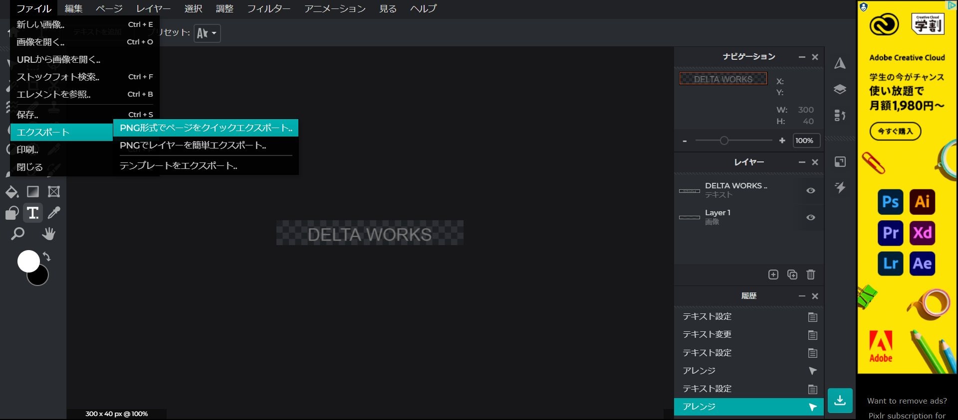 上記のサイトの Pixlr E というエディタを使います。