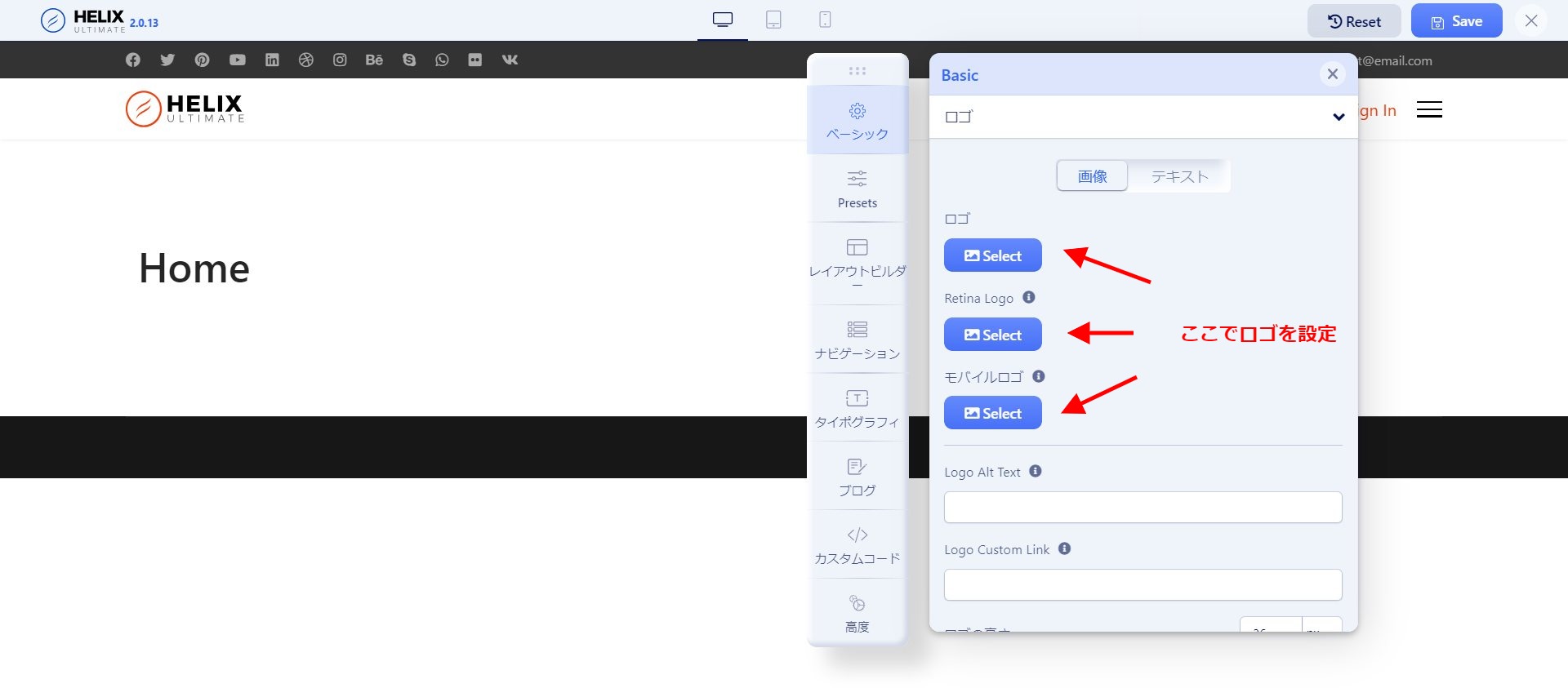 Helix を使ってサイトを構築している場合、ロゴマーク(ホームに戻る機能持ったマーク)にグラフィックを使いたいときの設定です。まず初めにロゴマークを作りましょうロゴマークは Pixlr.com のウェブエディタを使います。