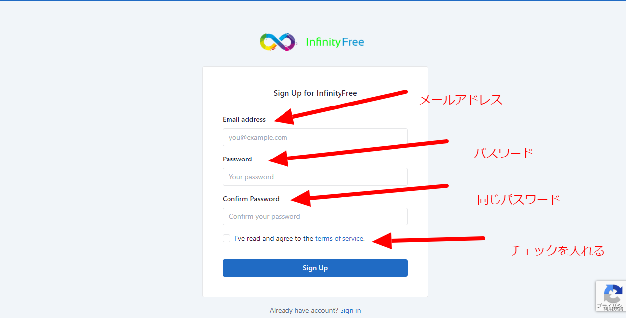 サイトにアクセスしてみましょう。 https://www.infinityfree.net/ 下記画像は Chrome にて日本語化しています。