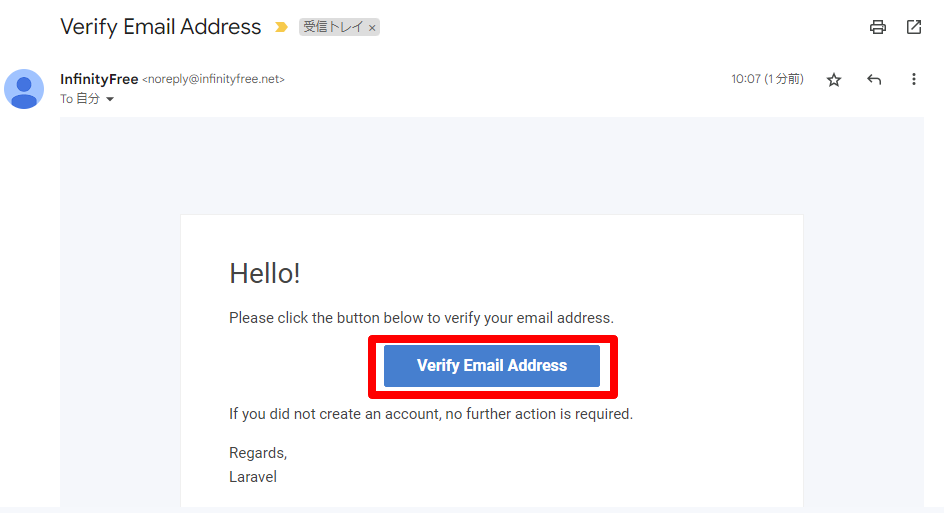 今回はGmailをアカウント用に使ったので下記内容が確認のために飛んできました。このため確認ボタンを押すと、ホスティングアカウントの設定に飛びます。