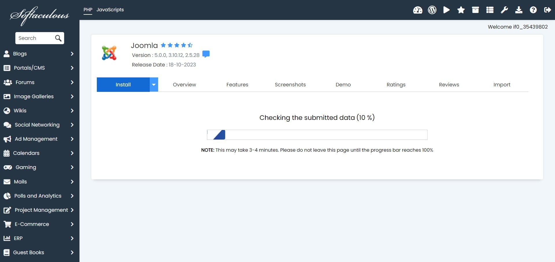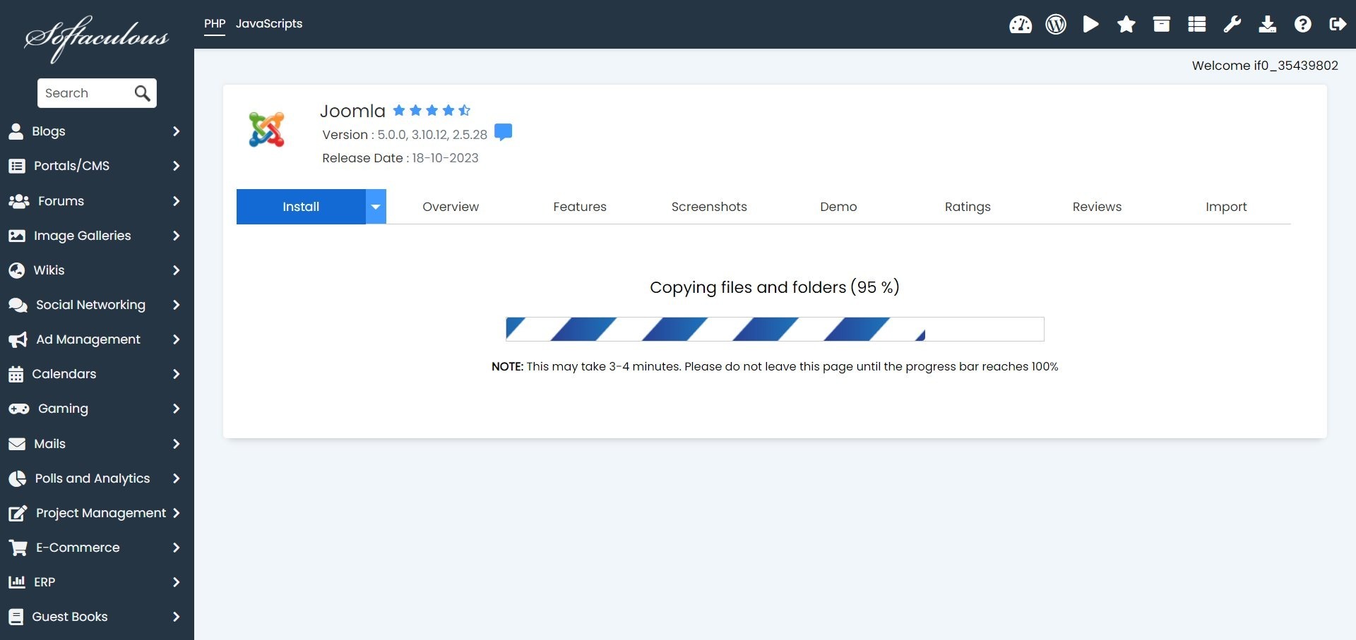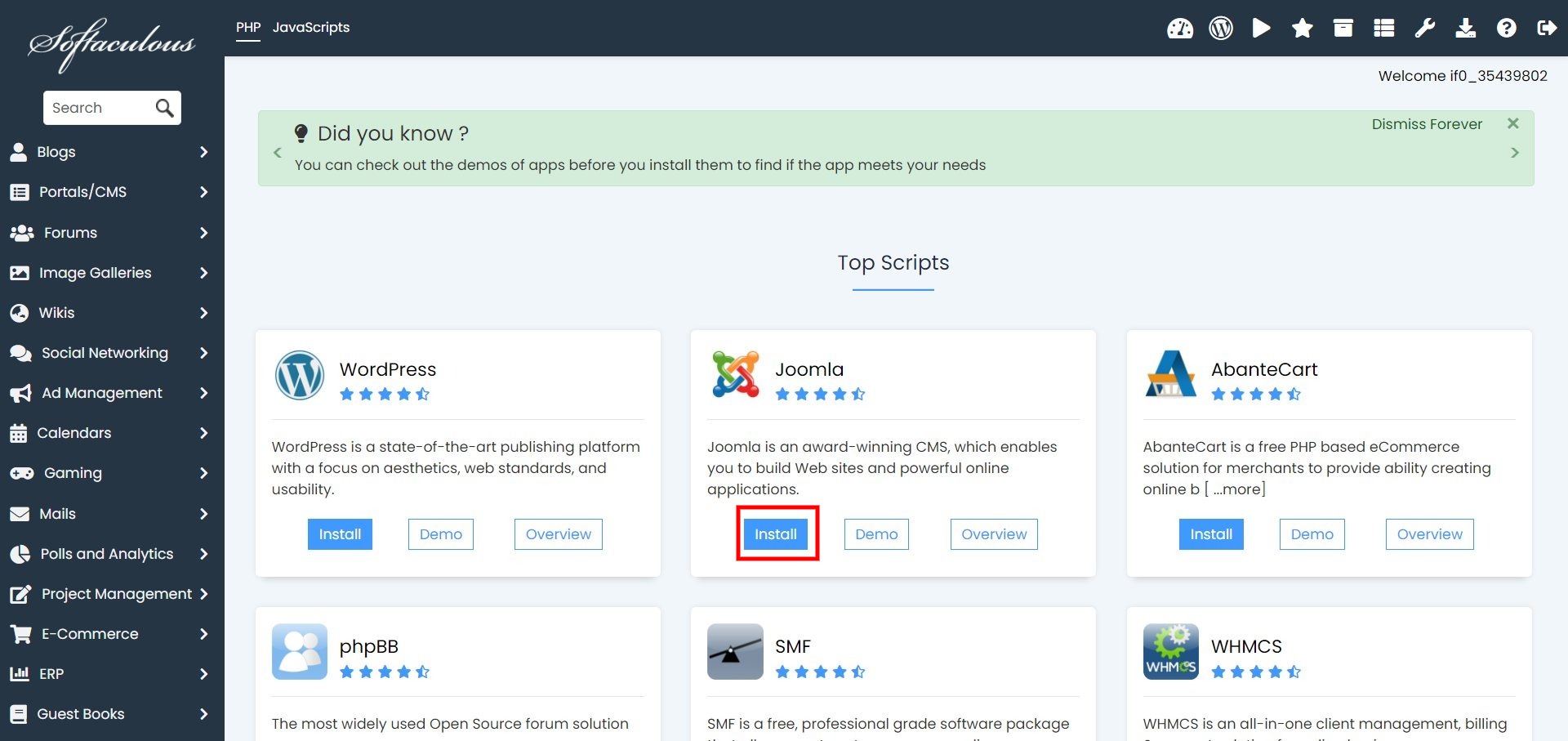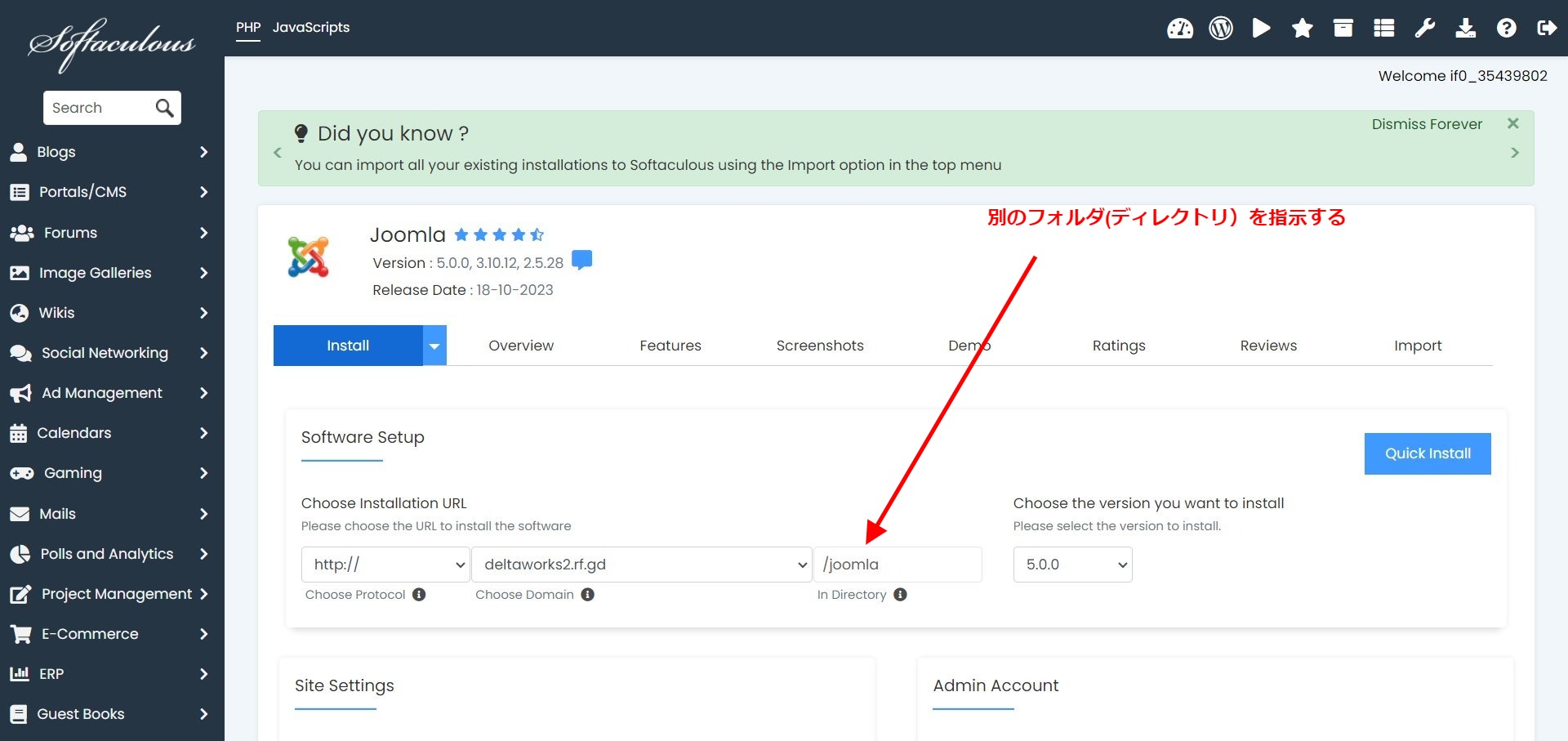 ソフトウェアーインストールのボタンでJoomaのインストールを選び各種情報を記入してからインストールボタンでインストールを行ってください。