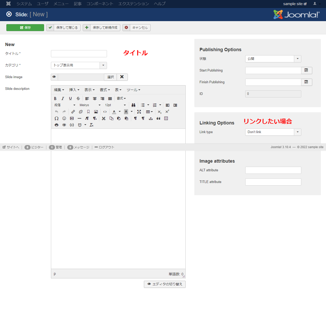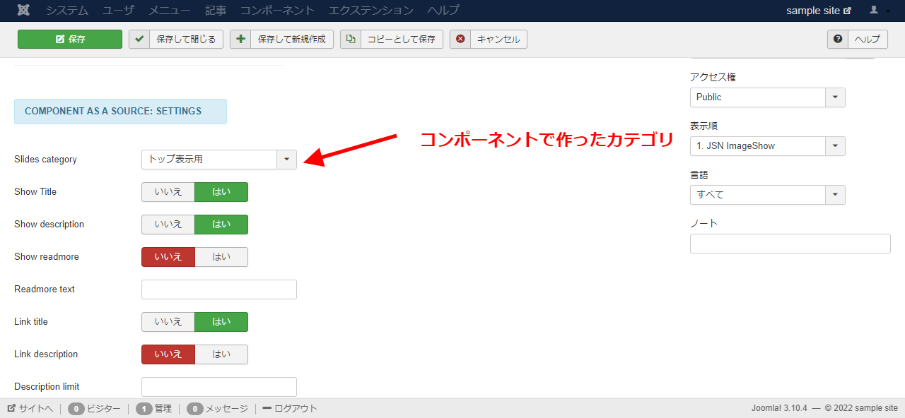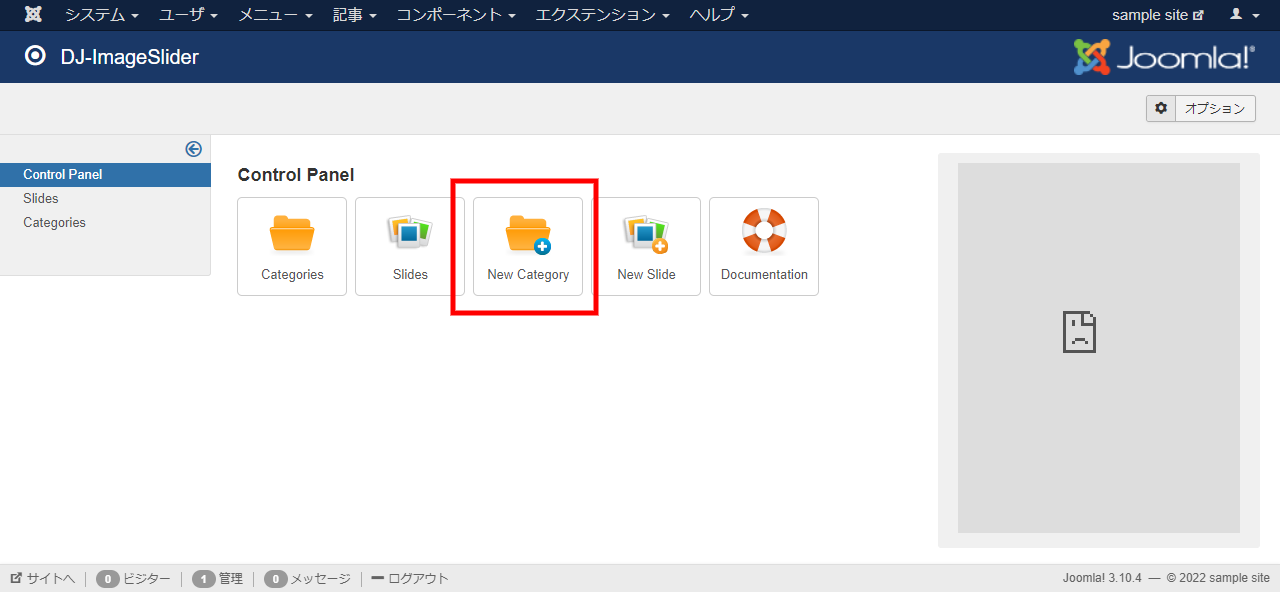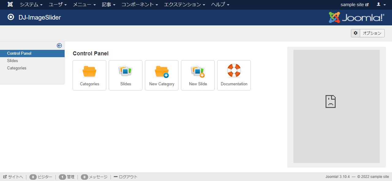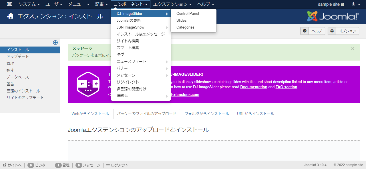 インストールが成功したら、コンポーネントメニューに DJ-ImageSlider の項目が追加されます。