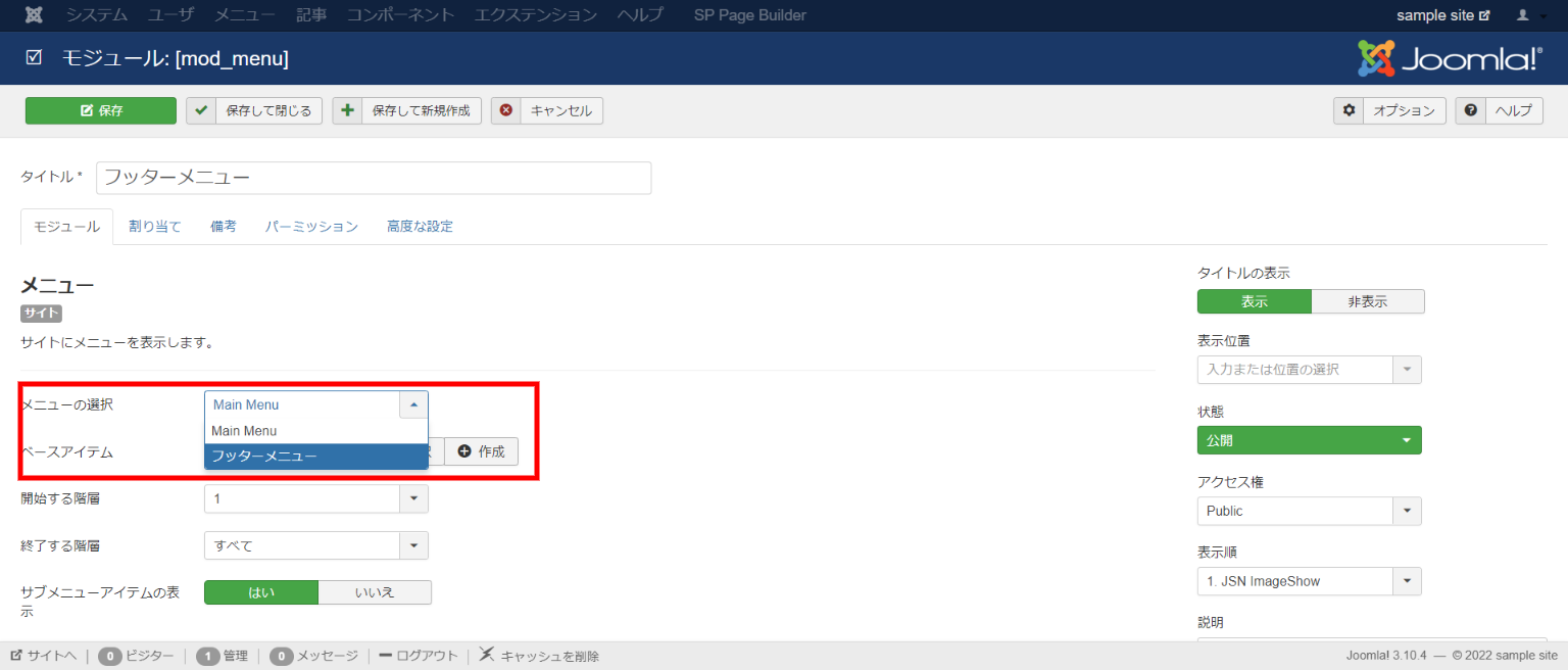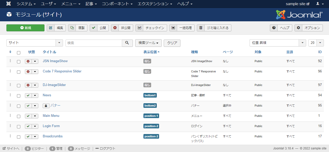 ここまで来たら設定した内容を実際のウェブサイトに表示することになります。そのためには表示用の部品としてのモジュールが必要になります。