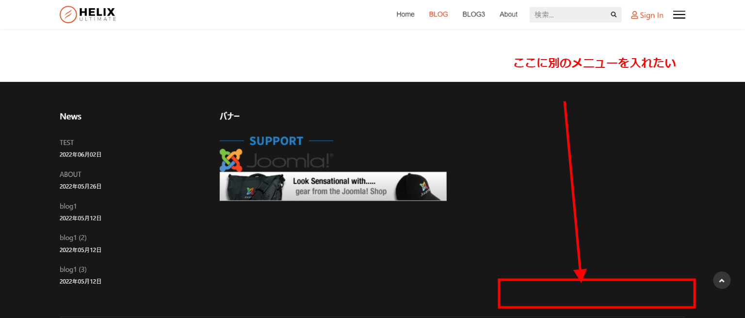 Main Menu と表記されているメニュー設定と別にページ下部に別メニューを設置したい場合があります。プライバシーポリシーなどの設置ですね。その場合はメインメニュー以外のメニュー追加が必要となります。
