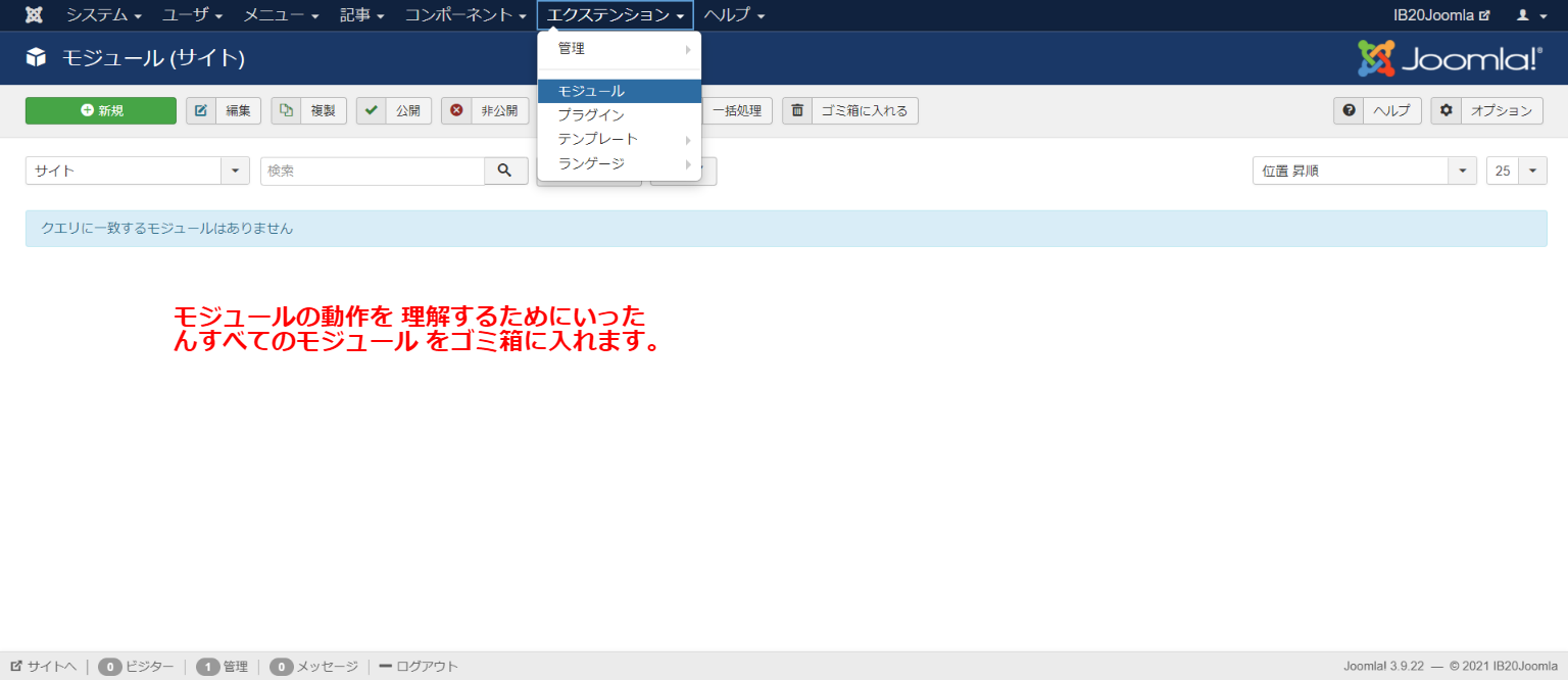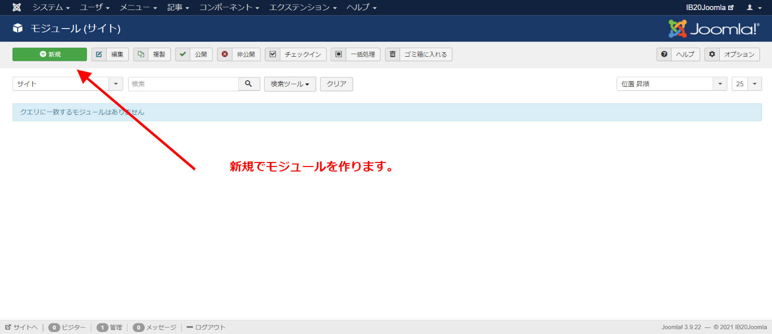 このエリアはJoomla最高権限管理者の情報を設定します。先に設定したデータベースのパスワードとは違います。任意位のID)とパスワードを設定して下さい。ユーザ名には日本語も利用可能です。このエリアの情報は必ず記録しておきましょう。