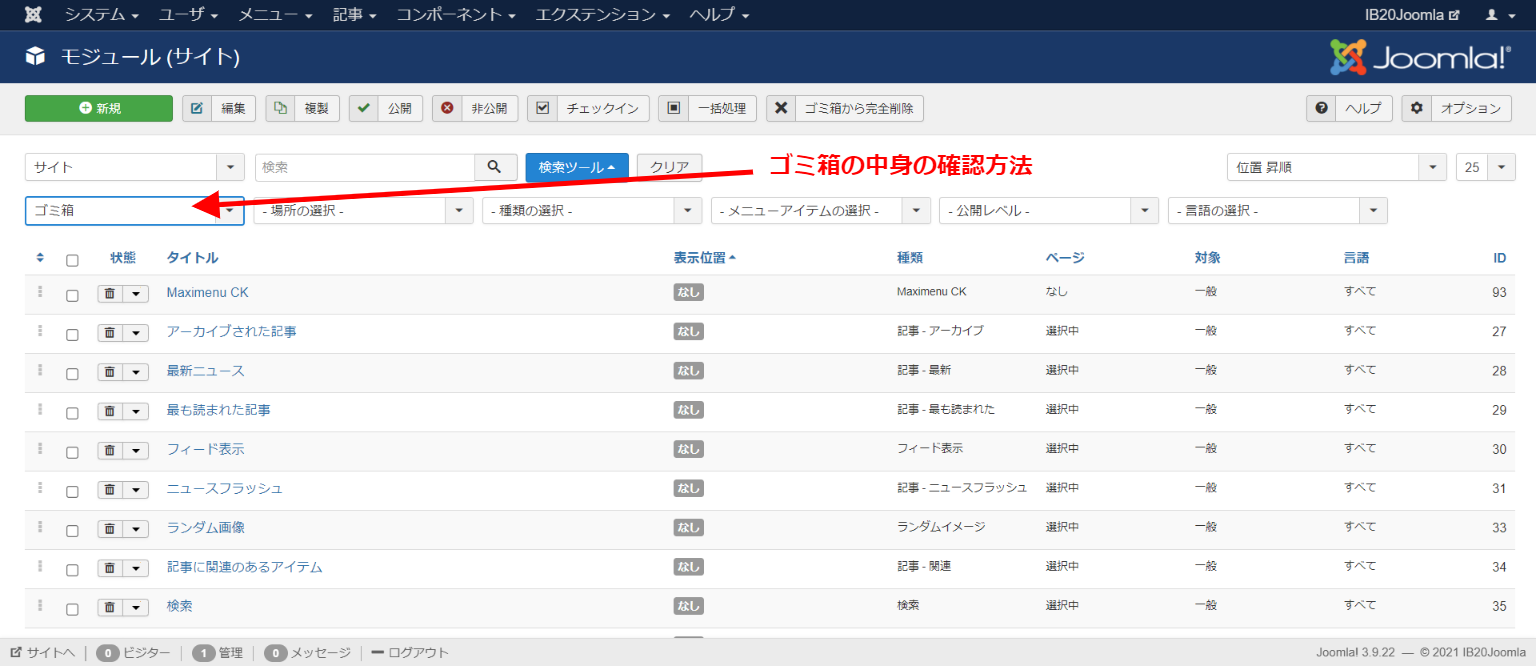 今回はJoomlaのファイルをアップロードしたディレクトリは「denbi」という名前ですからトップページは