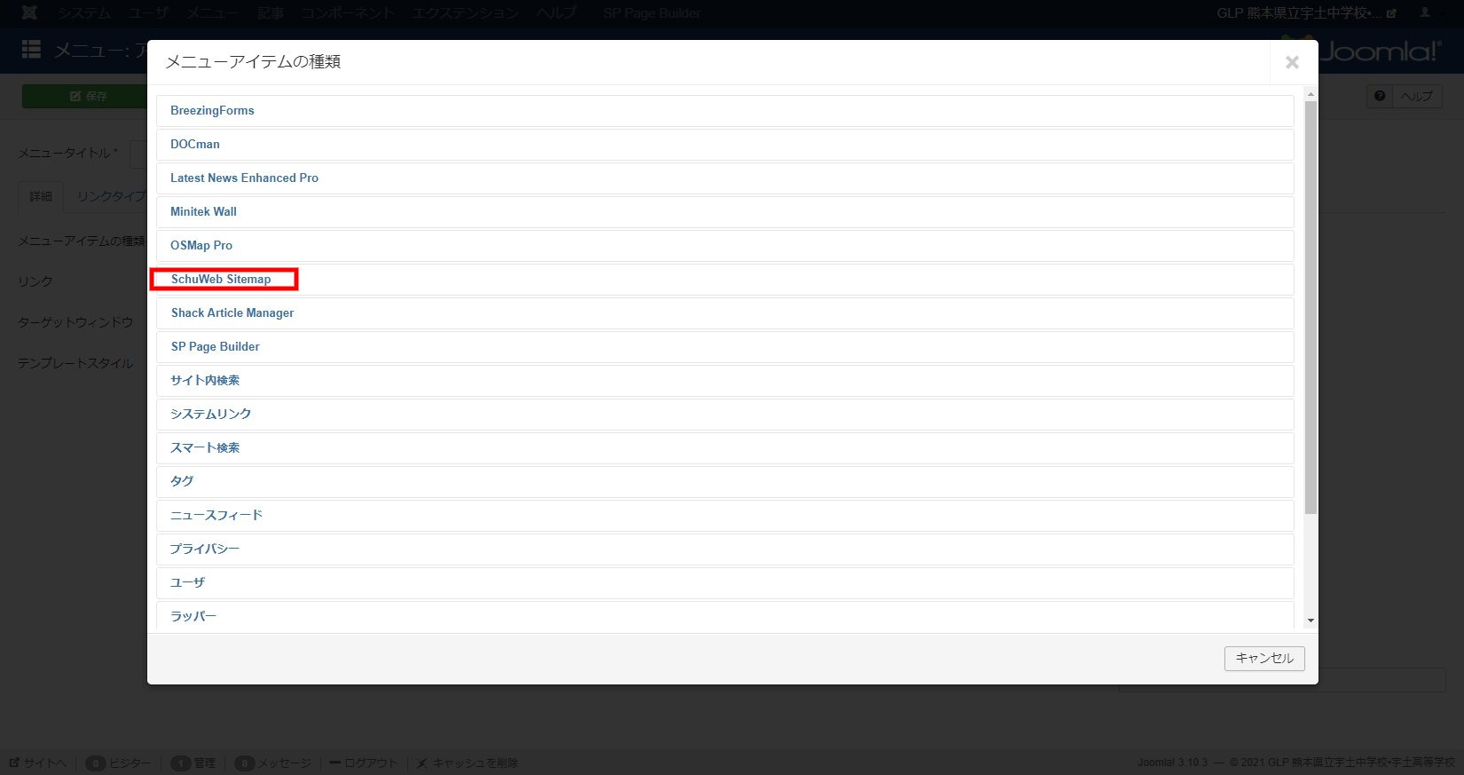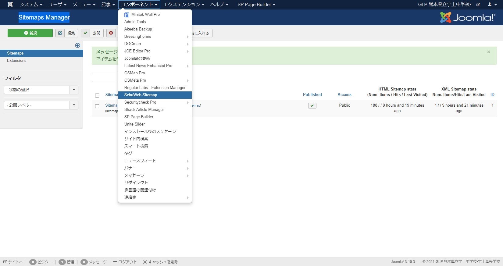 その後、設定画面に入ります。設定は管理画面のコンポーネント→SchuWeb Sitemap にあります。