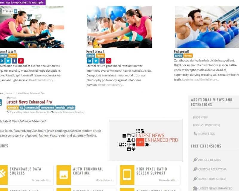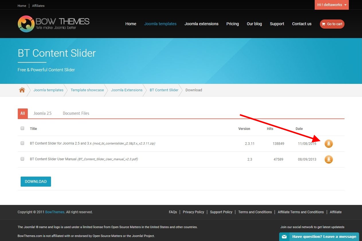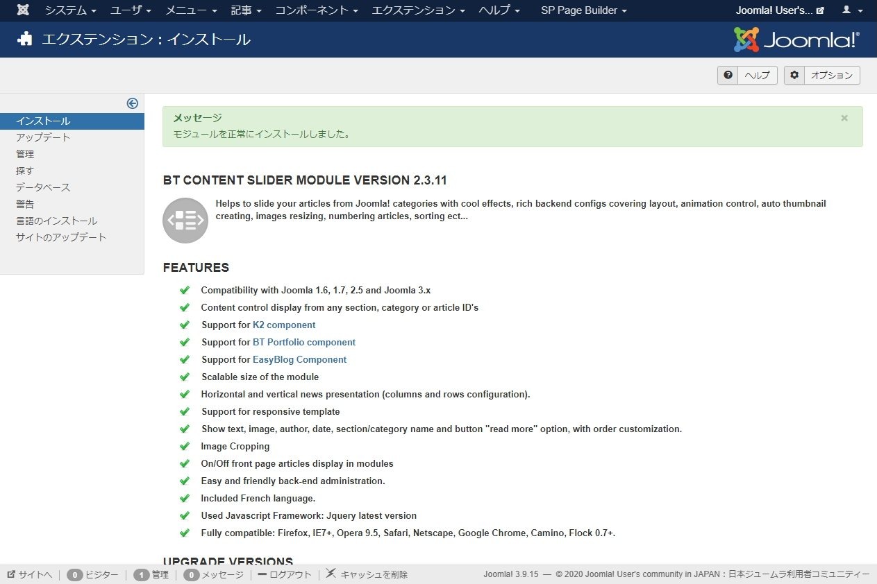 まずは、使いたいエクステンションをダウンロードします。今回は BT Content Slider という無料のニュース表示モジュールにしましょう。