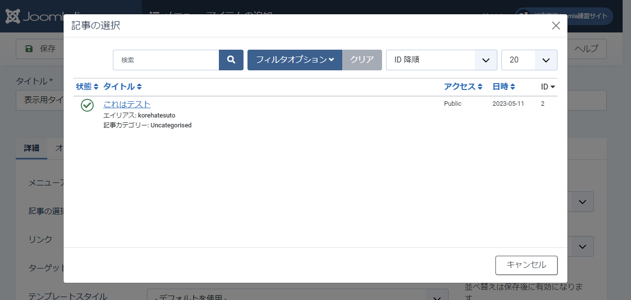 Joomlaの場合Wordpressなどと違い記事を書いたからすぐに表示されるという仕組みではありません。そこで、書いた記事を固定ページとして表示させる手順を説明します。
