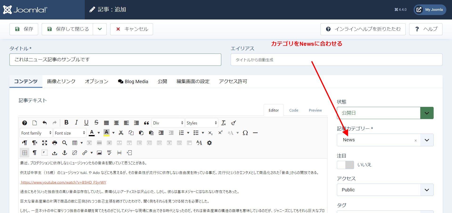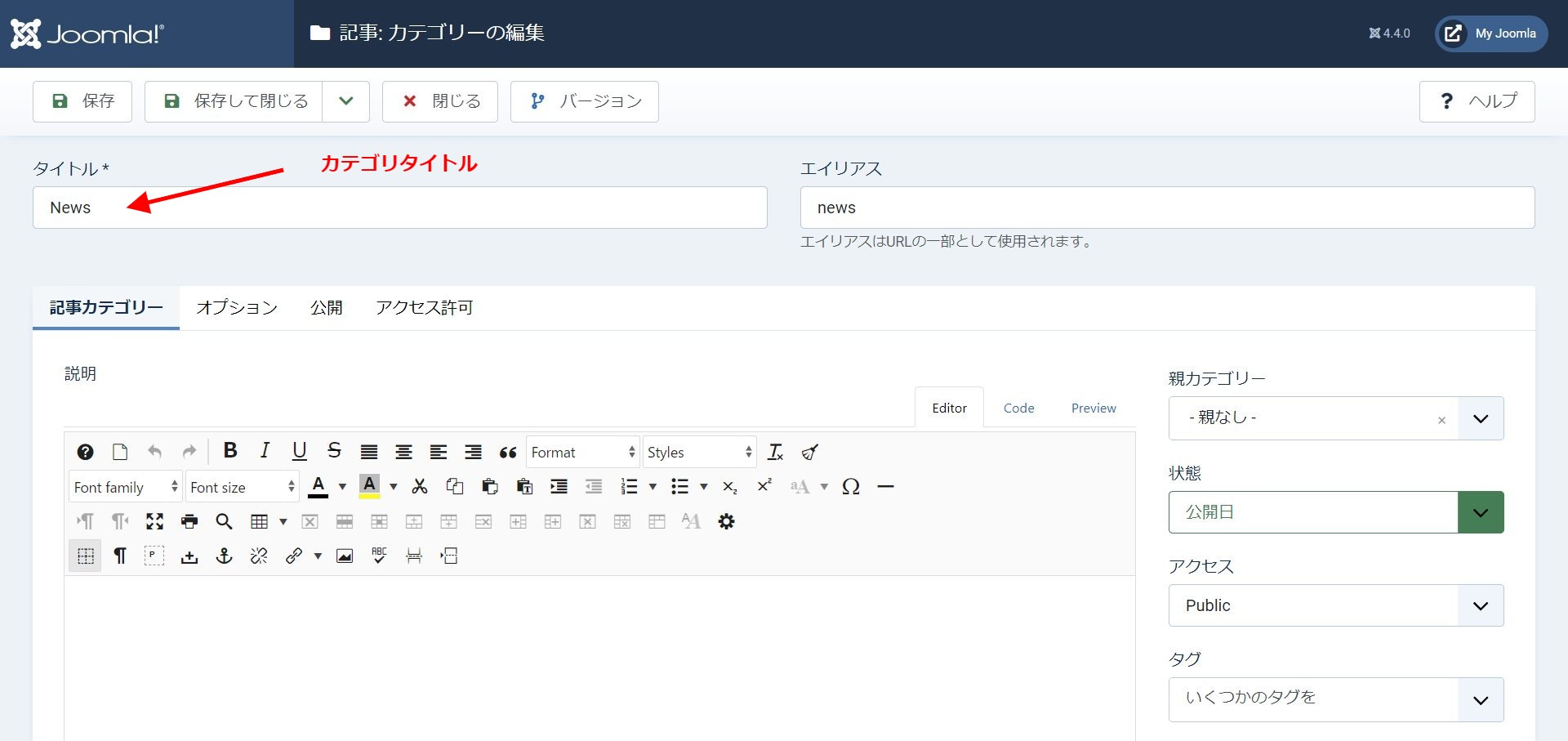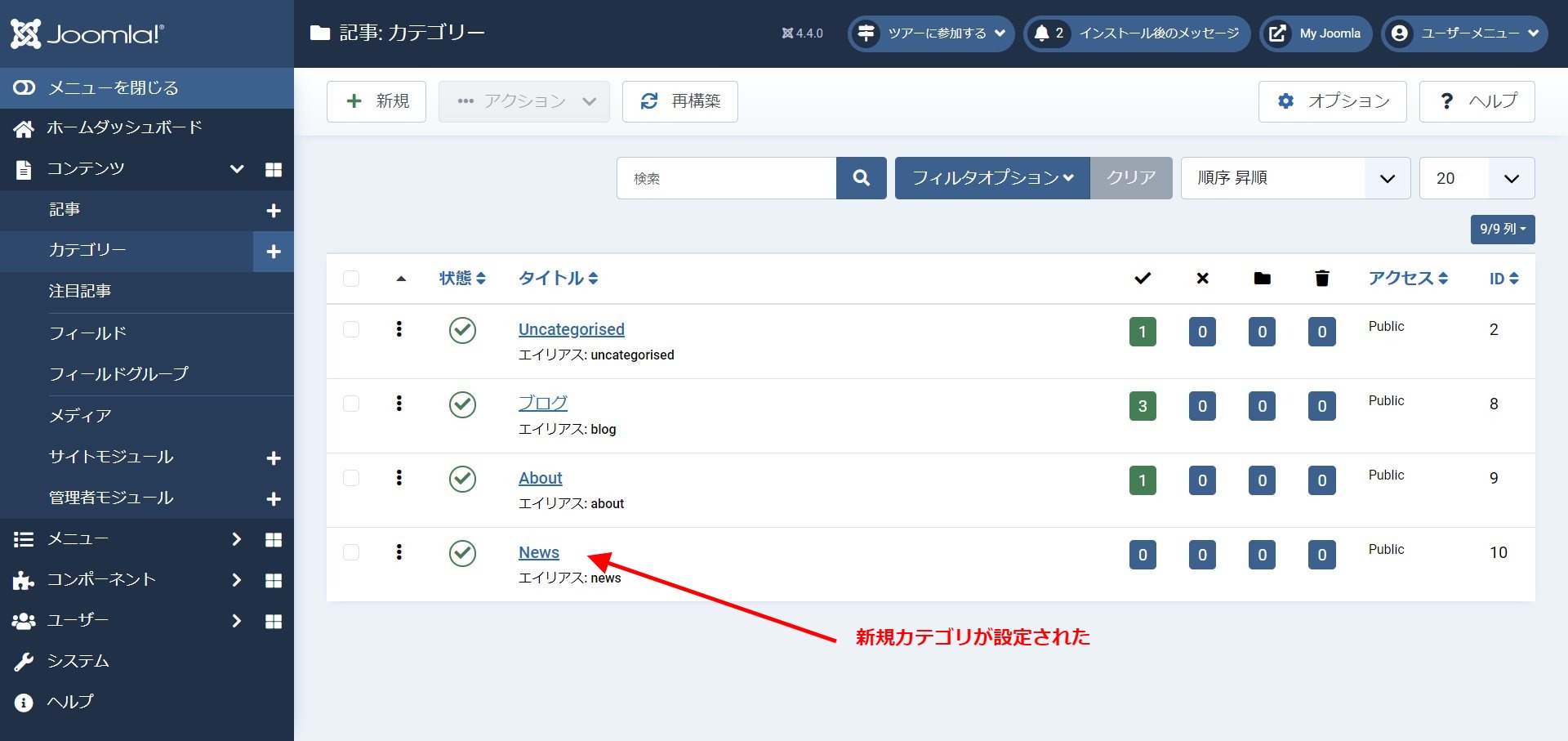 これで、ニュースの記事を格納するカテゴリが作れました。
