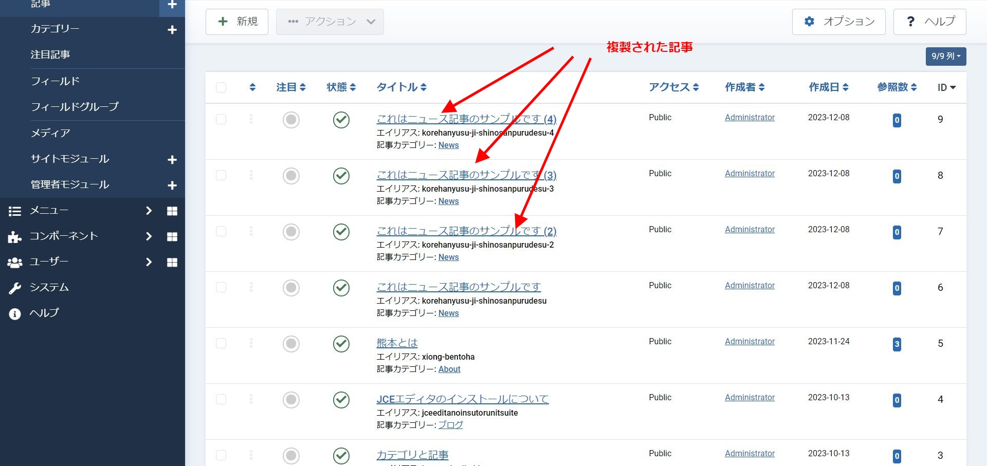 2,ダミーの記事を入れてみる