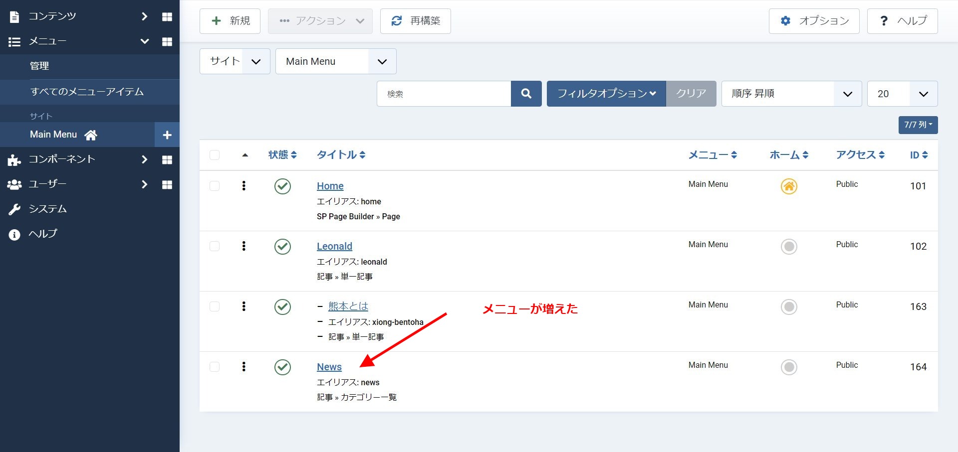 3,記事を表示するメニューを設置