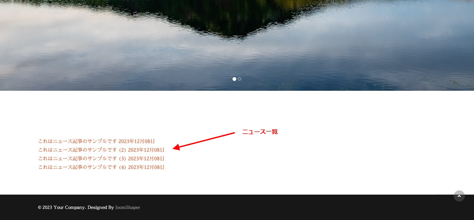 これらニュース記事を一覧で表示できるメニューを設置します。このメニューはブログ形式での表示もできますが、今回は一覧型にします。