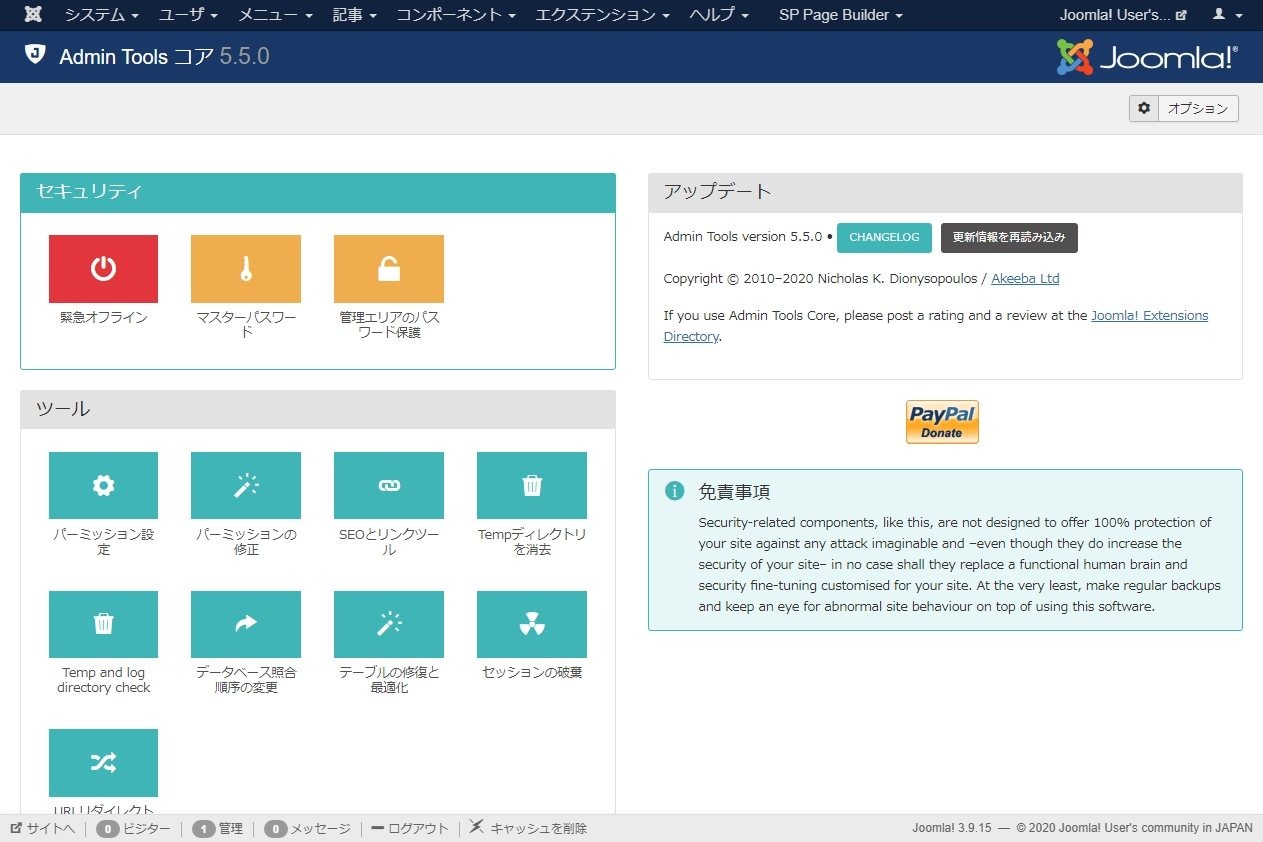 Joomlaは総合的にはセキュリティーも強固ですが、更にいくつかのツールによって安全性を高める事ができます。この Akeeba Admin Tools では管理画面(バックエンド)へのBasic認証を簡単に設定できる機能や、データベースの最適化など多彩な機能を持っています。