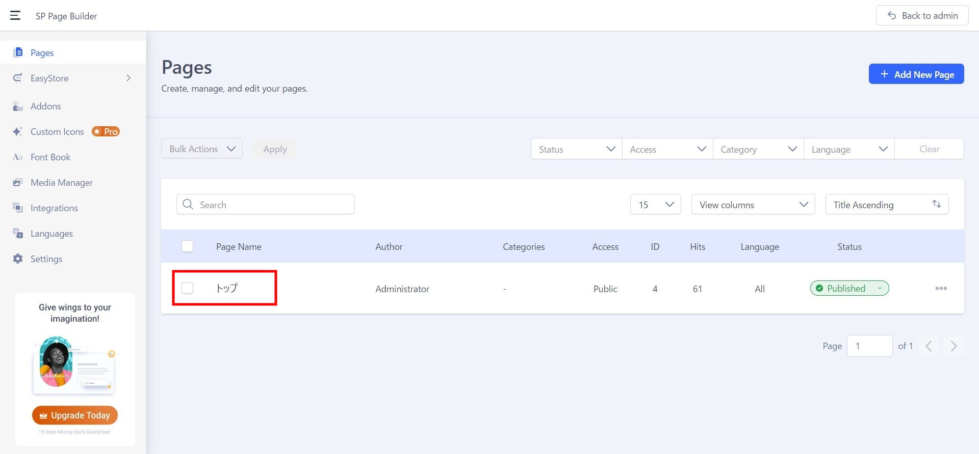 1.SP page Builder の管理画面